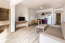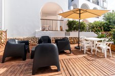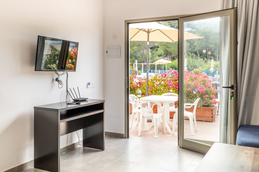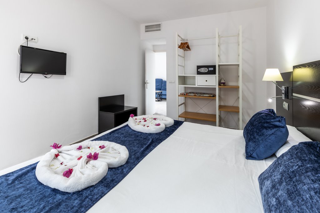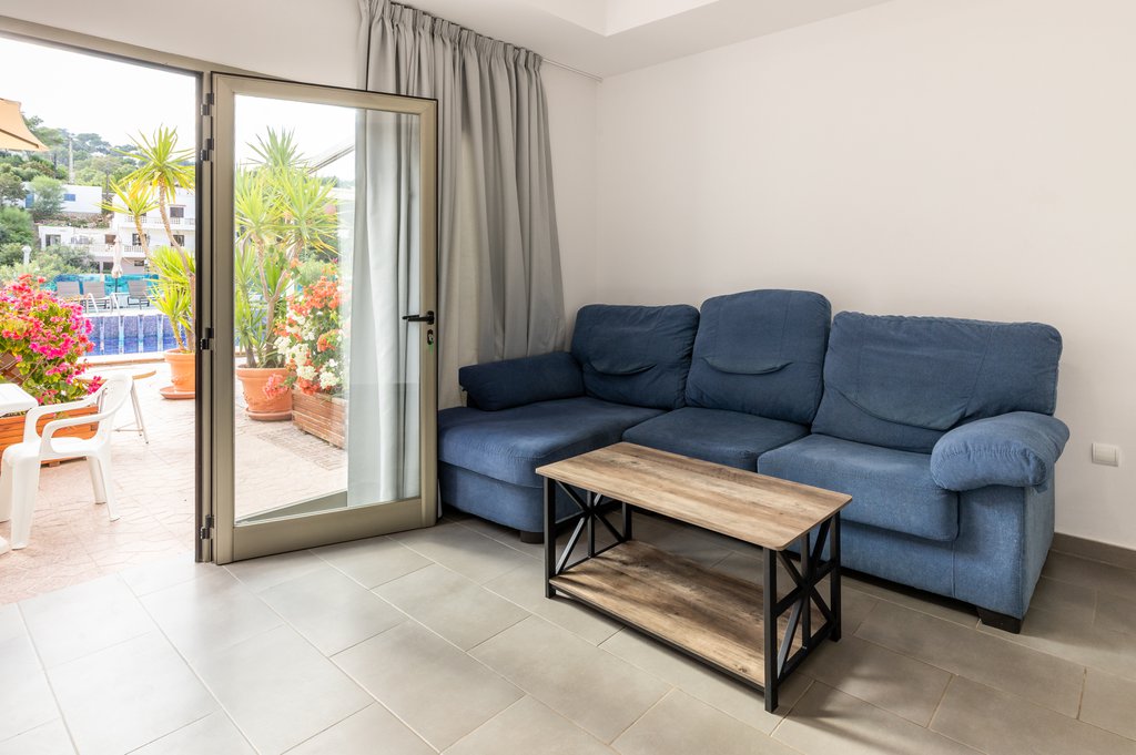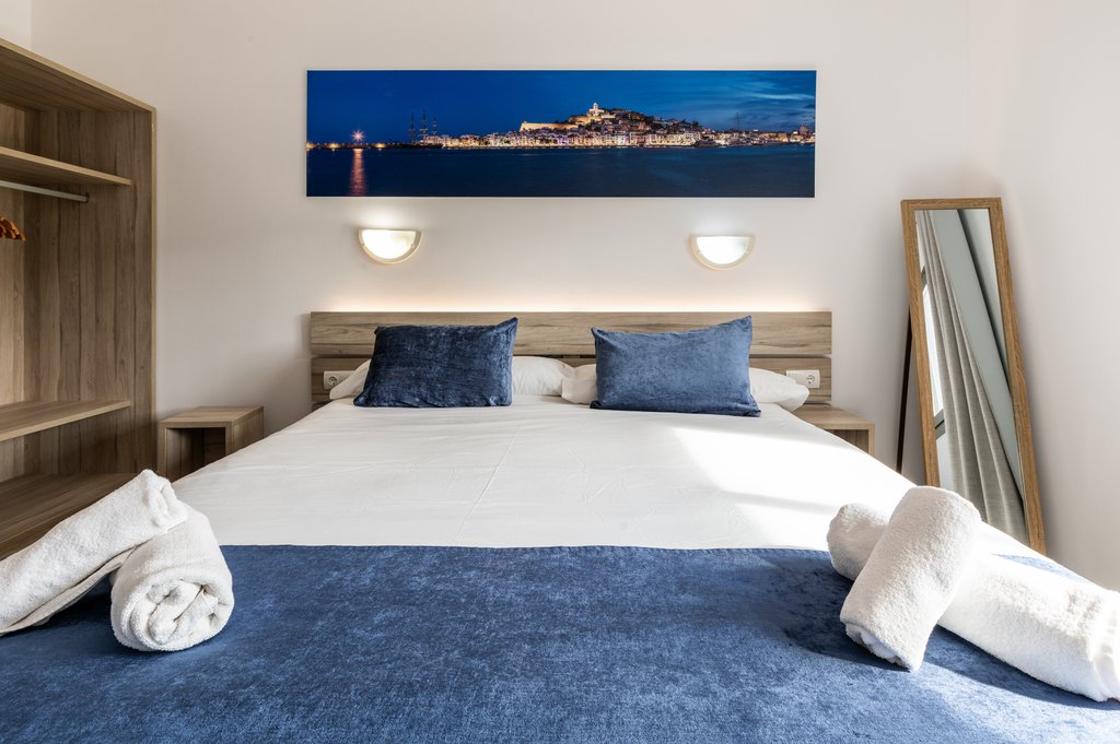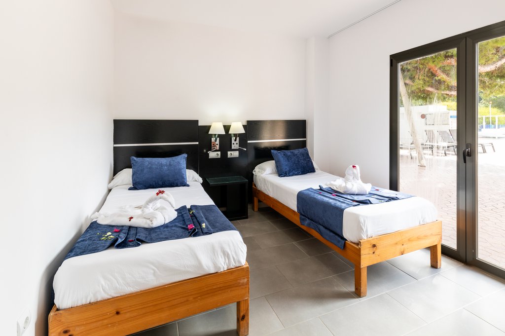 Situado en el maravilloso entorno de Cala Vadella, en primera línea de playa, a 15 Km de San Antonio y 21 de Ibiza, los apartamentos que forman el Aparthotel Puerto Cala Vadella dispone de apartamentos con capacidad para 2/4 y 4/5 personas provistos de nevera, cocina completa, salón, teléfono, baño completo, dormitorio doble con armario empotrado y caja fuerte en su interior.