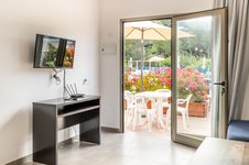Asimismo el complejo ofrece servicio de restaurante, Bar-Cafetería, supermercado, salón TV-Satélite, 2 piscinas (de adultos y niños), terraza solarium y servicio de recepción 24 horas.