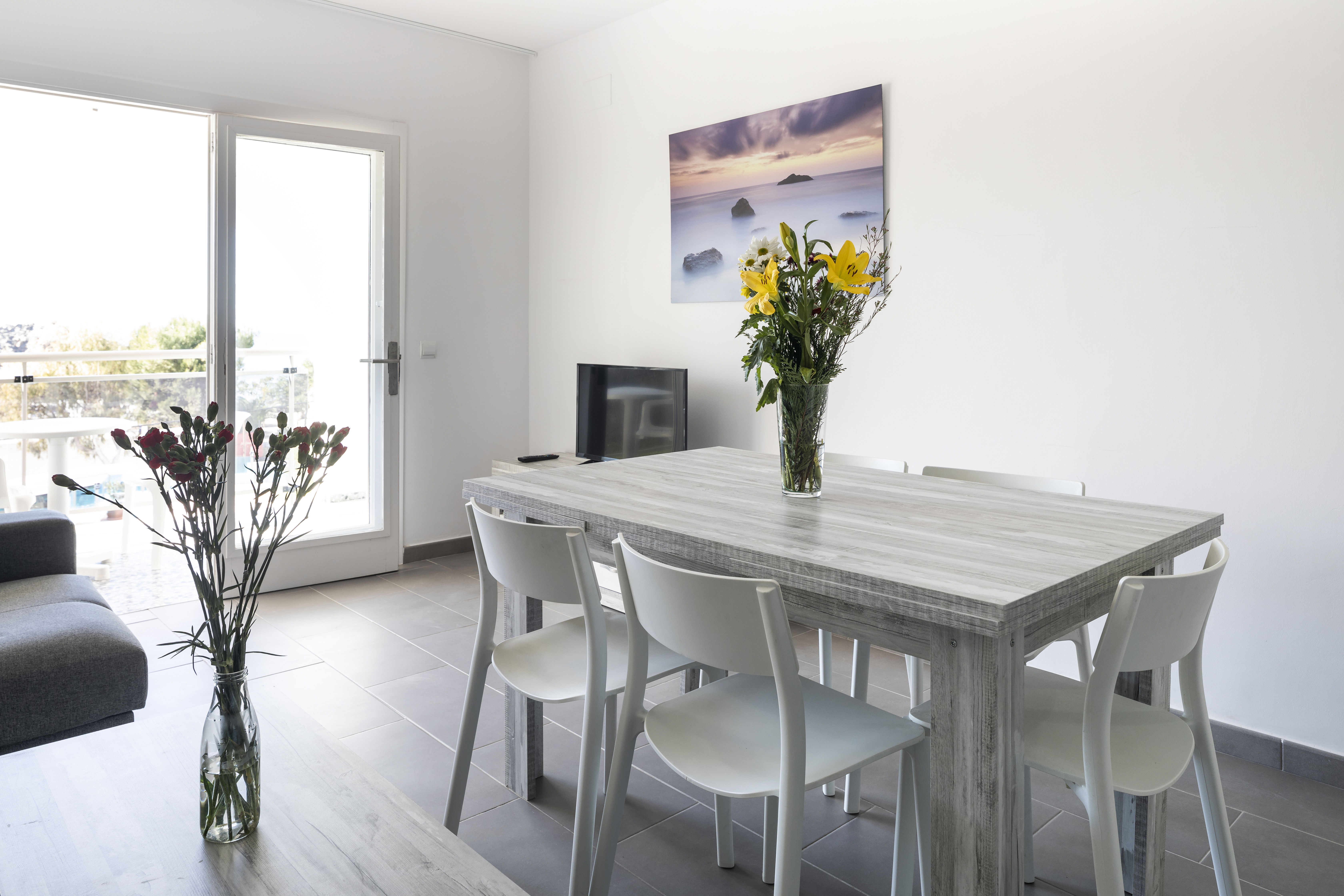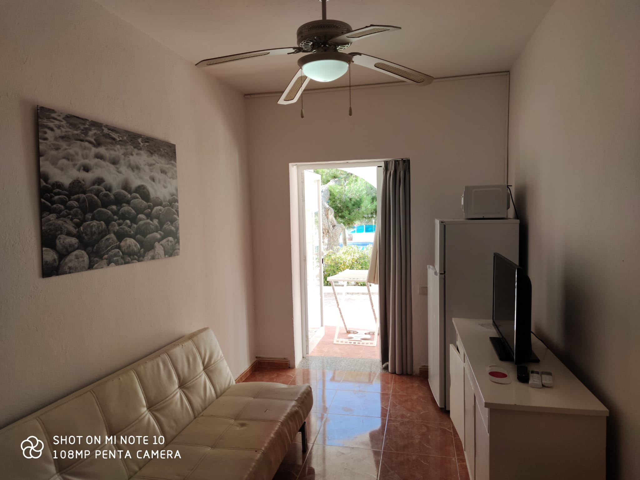 El apartamento dispone de terraza, un dormitorio doble con armario empotrado, un salón con sofá cama, una cocina pequeña con frigorífico y barra americana y baño completo. El apartamento es amplio y luminoso, decorado con estilo rústico. En su terraza podrá disfrutar de relajantes ratos