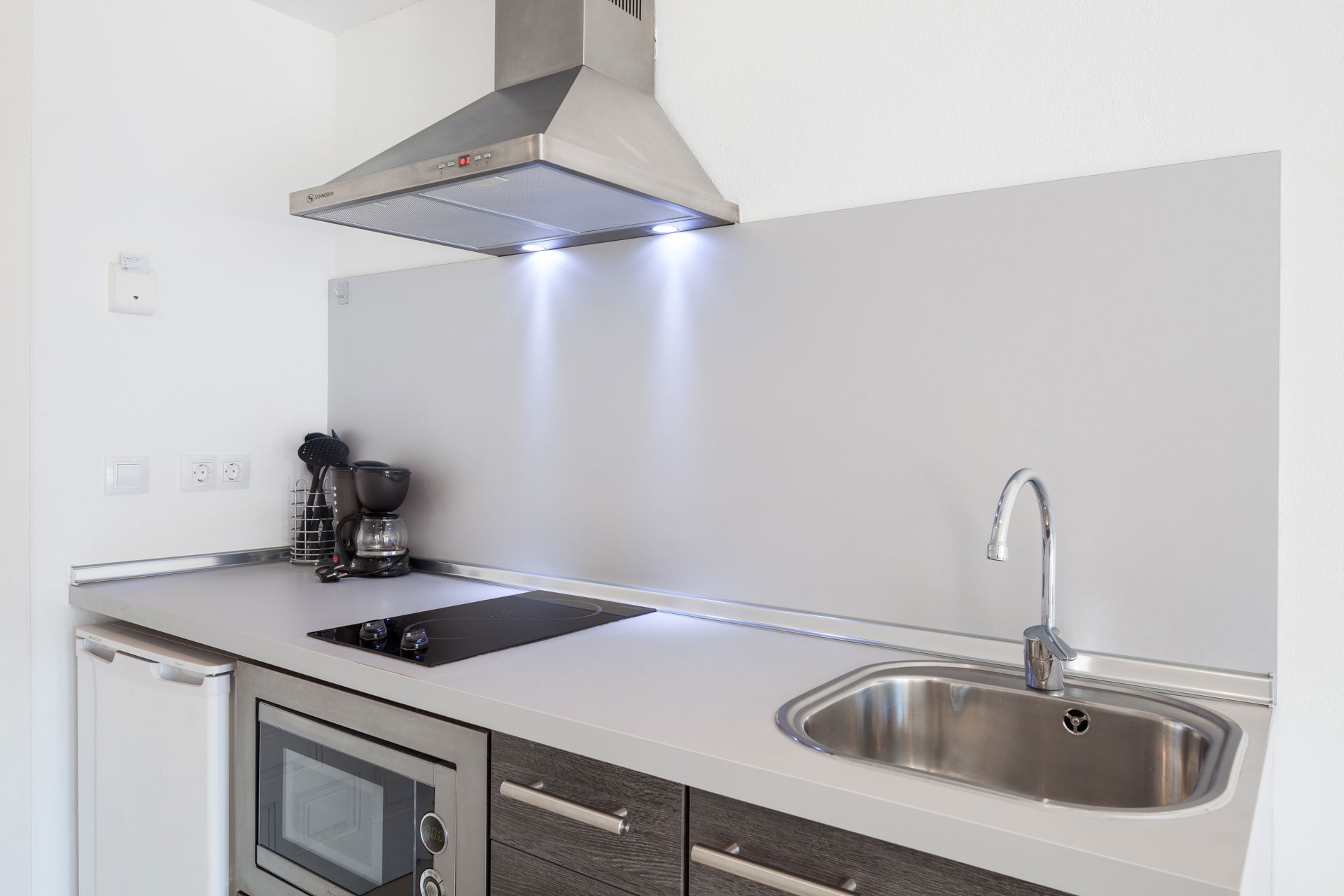 Estudio reformado dispone cama doble y dos sofa cama, un armario empotrado, una cocina con frigorífico y un baño completo. El estudio es amplio y luminoso, decorado con un estilo moderno.